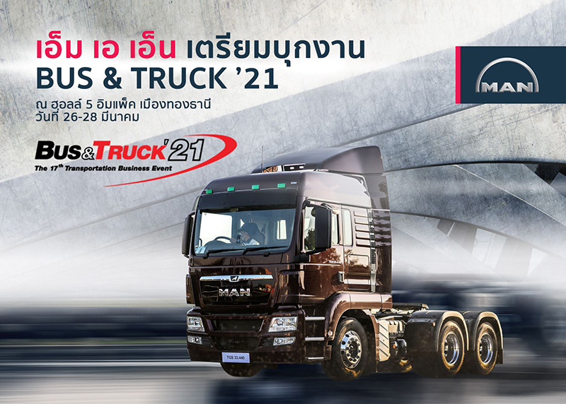 มาร่วมสัมผัสรถบรรทุกแกร่งมาตรฐานยุโรปได้ที่บูธเอ็ม เอ เอ็น ภายในงาน Bus & Truck งานแสดงรถใหญ่เพื่อการพาณิชย์และกิจการพิเศษระดับภูมิภาคอาเซียน โดยรวบรวมเทคโนโลยีและนวัตกรรมล้ำสมัยจากบรรดาผู้ผลิตและผู้จำหน่ายทั่วทุกมุมโลกมาจัดแสดง ณ ฮอลล์ 5 ศูนย์แสดงสินค้าและการประชุม อิมแพ็ค เมืองทองธานี ระหว่างวันที่ 26-28 มีนาคม 2564