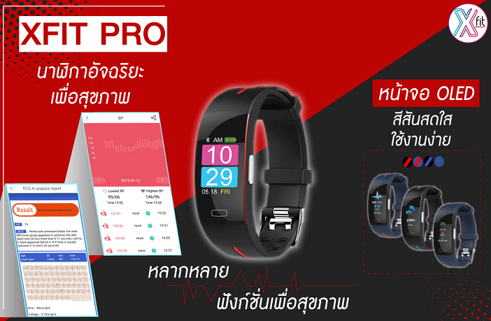 XFIT Watch นาฬิกาวัดความดัน-คลื่นไฟฟ้าหัวใจ อัจฉริยะ ที่เน้นฟังก์ชั่นสุขภาพและการออกกำลังกายได้อย่างลงตัว เหมาะกับผู้รักในการดูแลสุขภาพ และต้องการติดตามภาวะสุขภาพของตนเองได้แบบทันท่วงที พร้อมเปิดตัวไลน์สินค้าใหม่สุดฮอต “XFIT PRO” รุ่นพรีเมี่ยม โดดเด่นที่สามารถวัดค่าคลื่นไฟฟ้าหัวใจ (EKG) ได้แบบเรียลไทม์ ทุกที่ ทุกเวลา แสดงผลเทียบเท่าโรงพยาบาล ตอบโจทย์ผู้สูงวัย ผู้มีโรคประจำตัวความดันโลหิตสูง หรือผู้มีความเสี่ยงของการทำงานของหัวใจไม่ปกติ รวมทั้งกลุ่มผู้รักสุขภาพอย่างยิ่ง พร้อมเอาใจผู้เริ่มต้นออกกำลังกายด้วยรุ่น XFIT M3X และกลุ่มนักกีฬามืออาชีพต้องมี XFIT SPORT ไว้แนบกาย